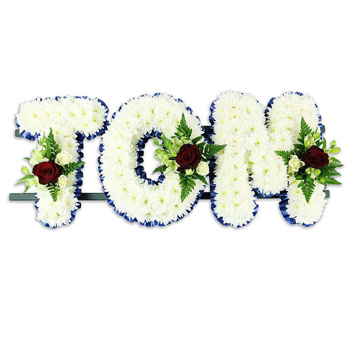 Honor a loved one with our beautiful letter tribute arrangement featuring white chrysanthemums, red roses, and white freesias. Each flower is hand-selected for superior freshness and artfully arranged to create a unique and meaningful display.